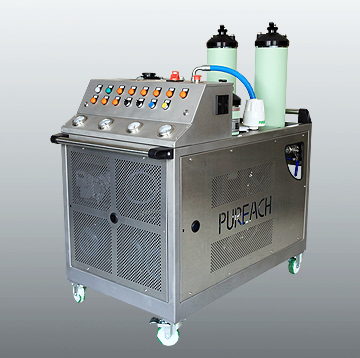 AP21 凈化裝置設計專門用于抗燃油凈化,將去除油液中水分、氣體、顆粒污染物和油液再生(降低酸值或提高電阻率)兩大功能綜合在一起。